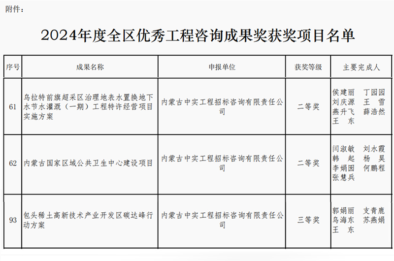 2025-04-1610137 次2025年4月16日,内蒙古工程咨询协会公布了2024年度优秀咨询成果奖获奖单位名单,我司取得两个二等奖和一个三等奖,我司专业能力和服务质量再次获得行业的认可。此次获奖,不仅体…